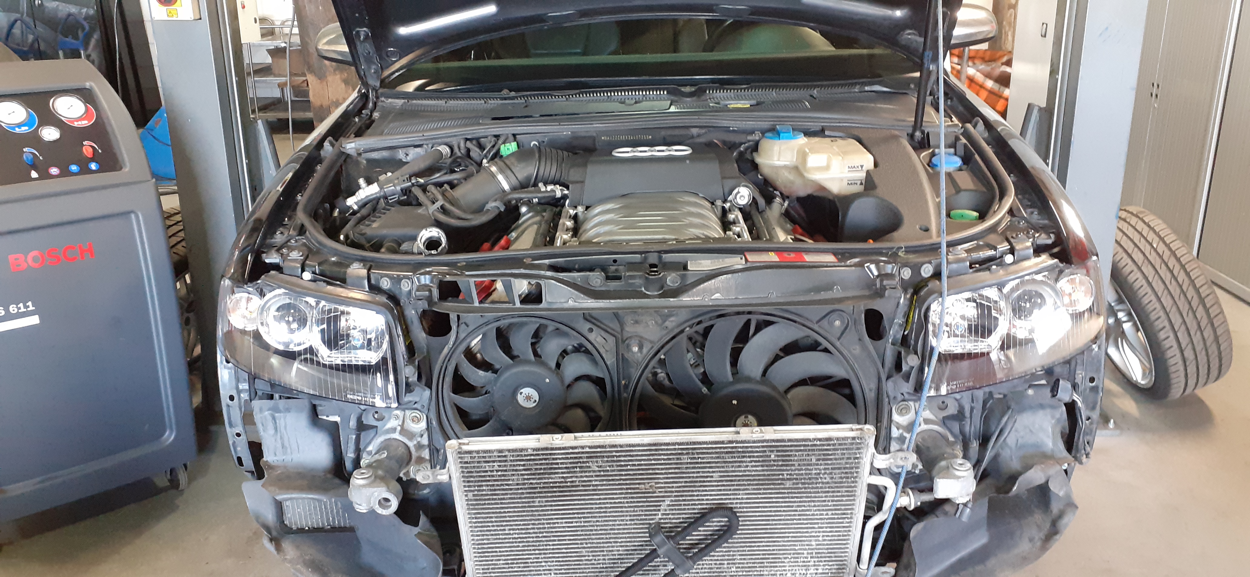 Bij deze Audi s4 wordt op dit moment een airco reparatie uitgevoerd. Ook voor uw diagnose en airco onderhoud het juiste adres.